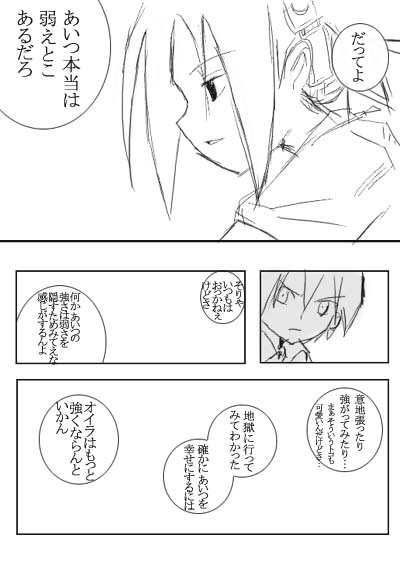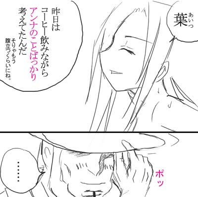 漫画もどき ■偽ふんばりの詩〜アイロン〜 ■いい夫婦の日の危機 過去の感想漫画もどきより ※()内は元ネタページ ■第二百四十五廻「負けらんねえ奴」(P16) ■第二百五十二廻「感情移入する」(P15〜16) その1 その2 ■四コマ(クリスマスネタ) ■第二百五十四廻「白黒」(P1〜2) その1 その2 ■第二百五十七廻「また決着」(P19) ■第二百六十一廻「最初で最期の」(P14) ■第二百六十二廻「ライハイト・シーン」(P8) |